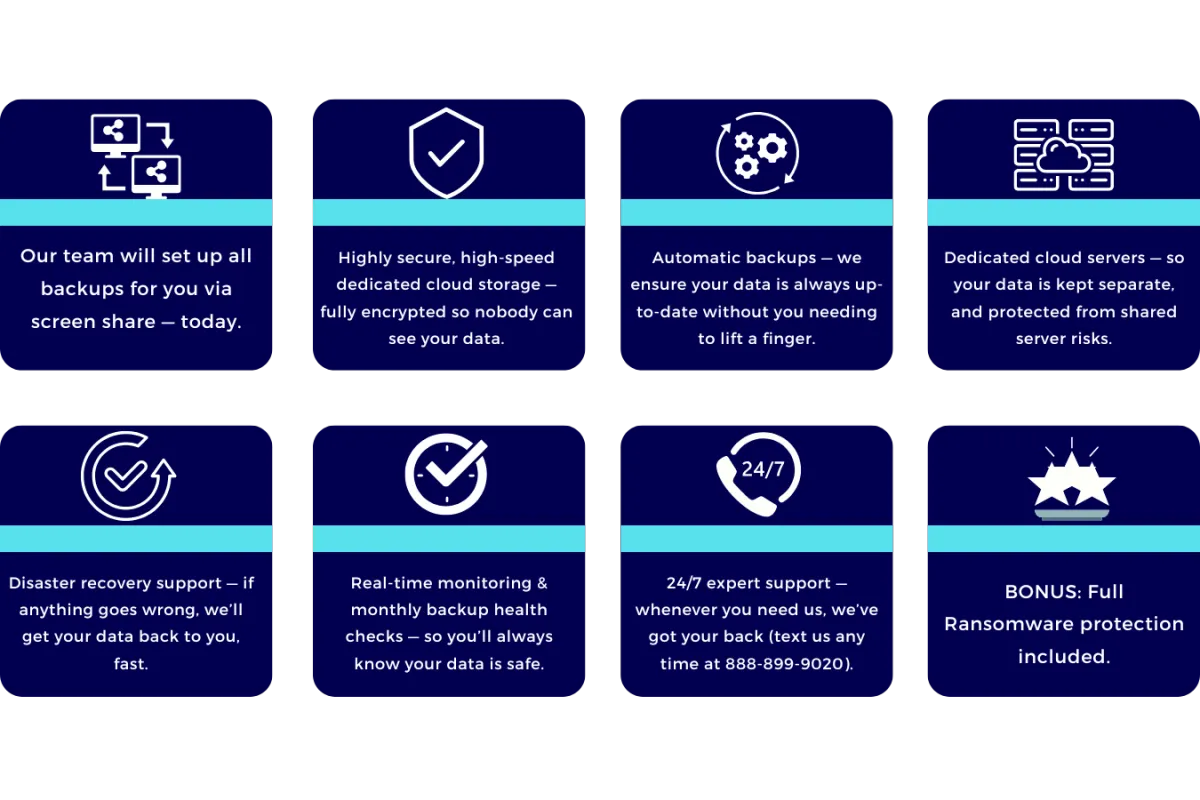 That’s why we created our Dedicated Cloud Backup Solution, built to keep your data safe from loss, cyberattacks, and unexpected disasters—all securely stored in a dedicated cloud server. With our system, you never have to worry about data backups again.